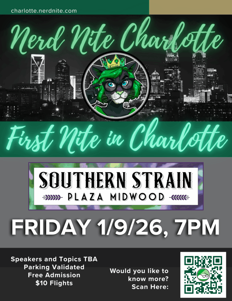 Updated November 29, 2025: the First Nite in Charlotte show was pushed back to January 9th after getting feedback from potential presenters (a lot of people loved the idea, but a Thursday night show would have been a challenge). Going forward we’re planning on having the show on the 2nd Friday of the month.